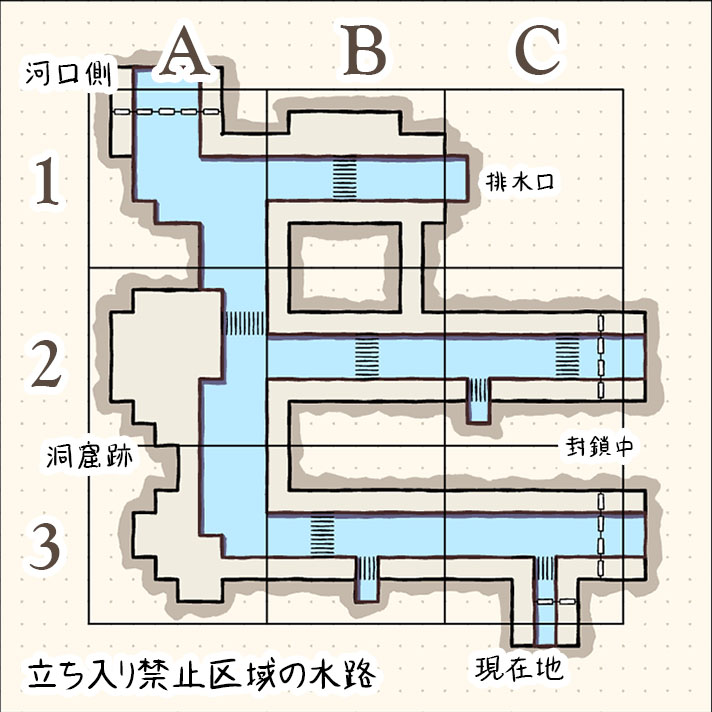 [メイン] カイ : 「後は向こう…水路の管理でも把握していたようですが、通路が脆くなってる場所があったとかもありましたけど」